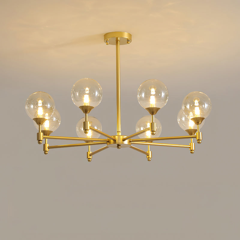 Introducing the Alessio Globe Chandelier - a sophisticated and rust-resistant pendant light made from high-quality brass. Featuring a unique design of enchanting glass that emits a gentle radiance. this chandelier adds a beautiful touch to any living space or room. Elevate your decor with this modern and elegant lighting piece.