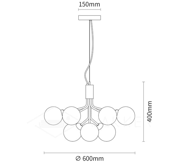 59″ Adjustable hanging height cable, which can be lengthened as required.