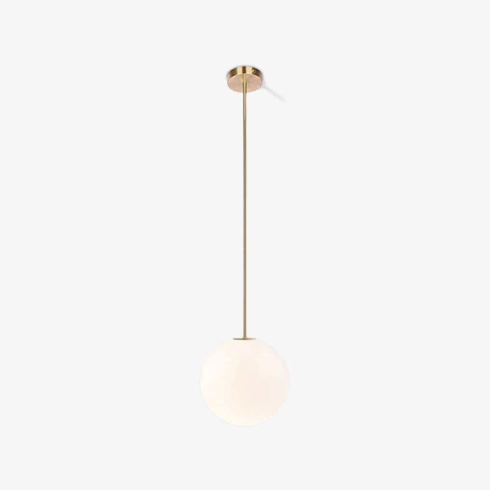 The Brass Architectural Collection Pendants is a family of lights that feature a spherical pendant suspended on a slim brass rod. A modern and elegant hanging light. the globe is made of mouth-blown opal glass which comes in 7 different sizes.