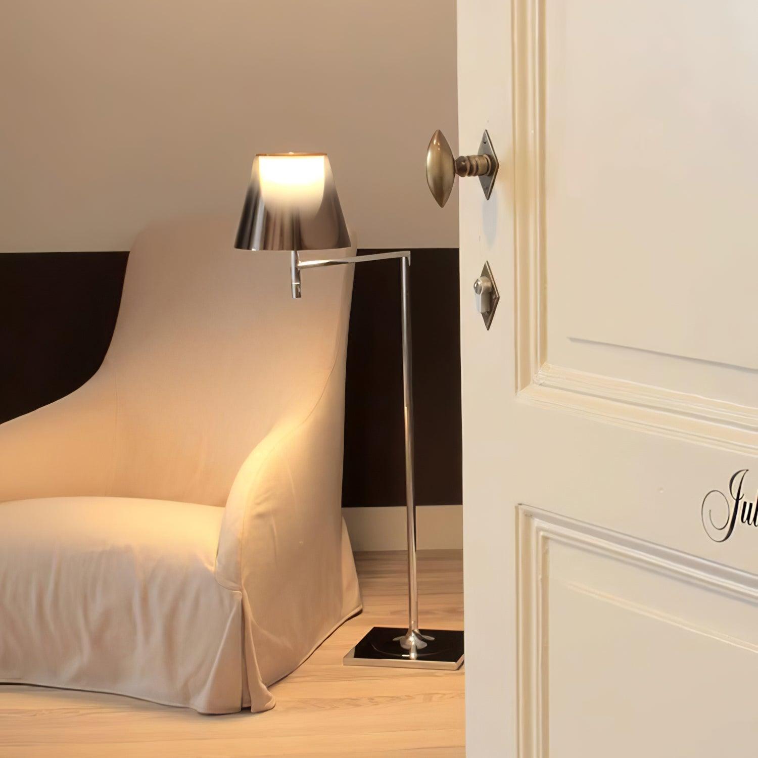 The Chrome Prism Floor Light is an iconic floor lamp with an angular design and adjustable arm. perfect for providing ample lighting in any space. from a diffused light to an intense spot. Embrace a modern aesthetic with this sleek and stylish lamp that adds a timeless touch to any room.