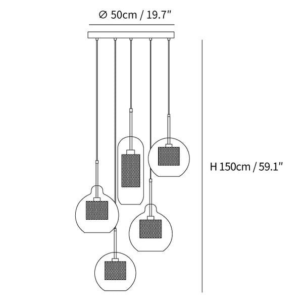59″ Adjustable hanging height cable, which can be lengthened as required.