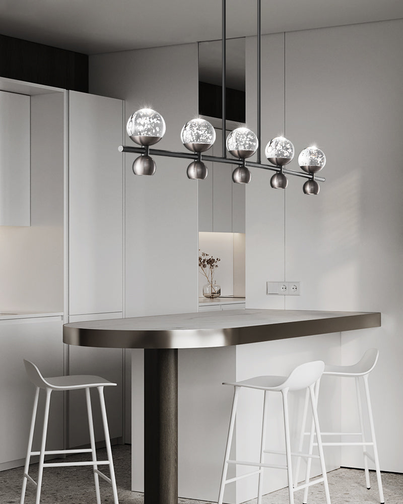 The Crystal Nebula Chandelier is a dazzling fixture that mimics the mesmerizing beauty of a nebula. Each sphere is meticulously crafted from glass. creating an illusion of stars encapsulated within. This chandelier's unique design provides a cosmic touch to your decor. ideal for those who appreciate both modern and whimsical aesthetics.