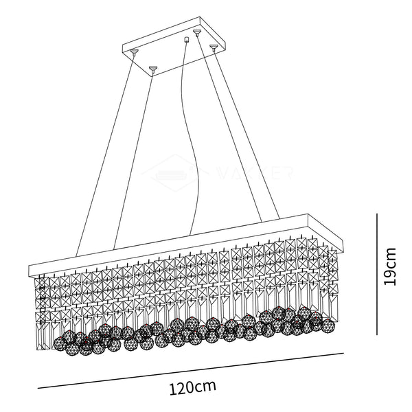 This contemporary crystal raindrop chandelier is creatively designed in a rectangular fashion, with hand-picked multi-faceted K9 crystals of various shapes hanging from a sturdy stainless steel frame and base. The sparkling crystals refract light in multiple angles when lit, making this pendant light a great addition to your living space if you’re looking for just the right amount of glitter in ambient lighting. A perfect statement piece, this gorgeous crystal fixture will easily add elegance to your dining room, bedroom or kitchen and transform any other area of your home into a luxurious and charming realm.