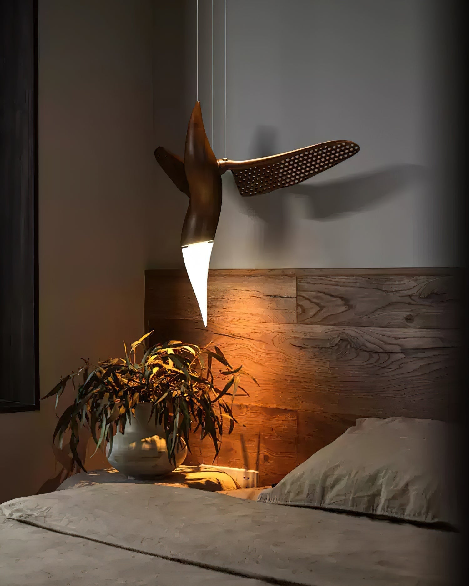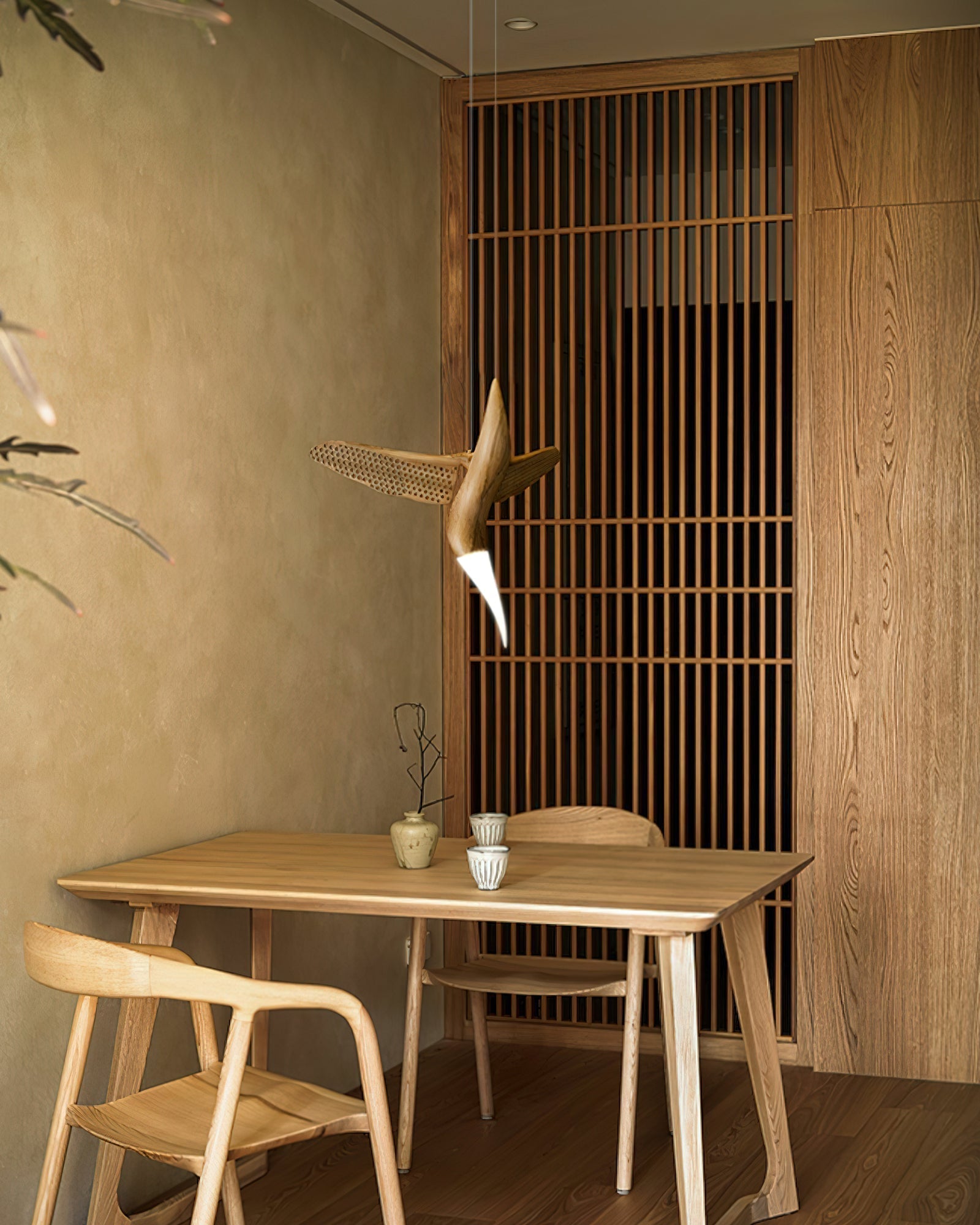 The Dancer chandelier is a perfect blend of movement and art. designed to capture the grace and fluidity of a dancer in performance. Each element of the chandelier is crafted from natural wood to resemble an elegant bird with its wings outstretched. as if frozen in the moment of flight or dance. The perforated wings allow light to filter through. casting an intricate pattern that dances across the room. enhancing the chandelier's dynamic feel.