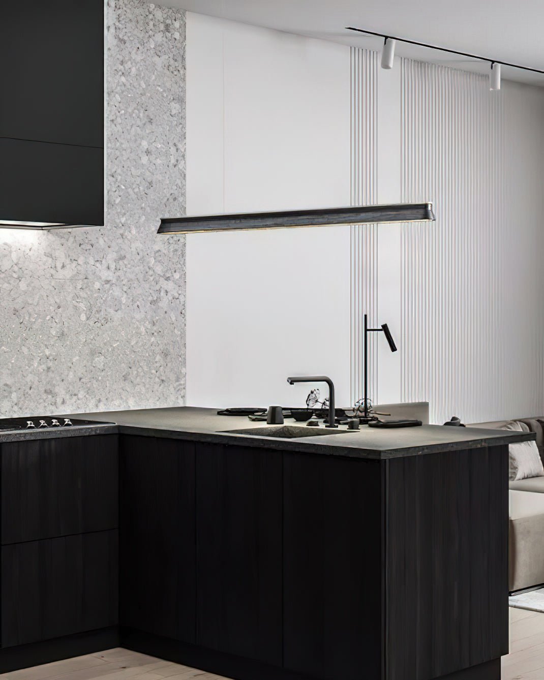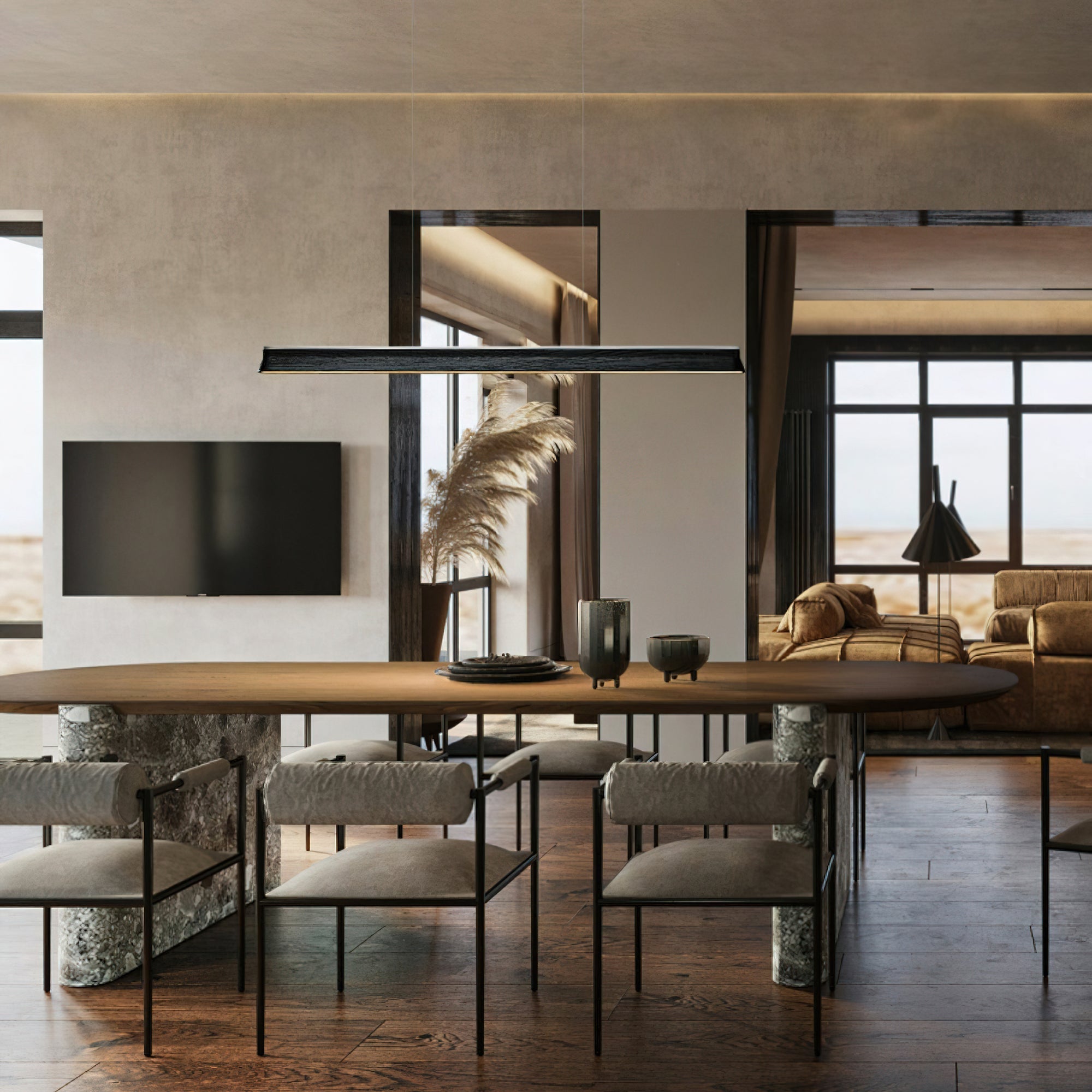 Introducing the Danqiu Chandelier - the perfect lighting fixture for modern interiors. Its sleek. minimalist design features a streamlined wooden beam. creating a warm and elegant atmosphere. With a floating effect. this pendant lamp is perfect for clean and unobtrusive lighting in dining areas. kitchens. and offices. The soft. diffused light provides even illumination. ensuring a comfortable and stylish space.