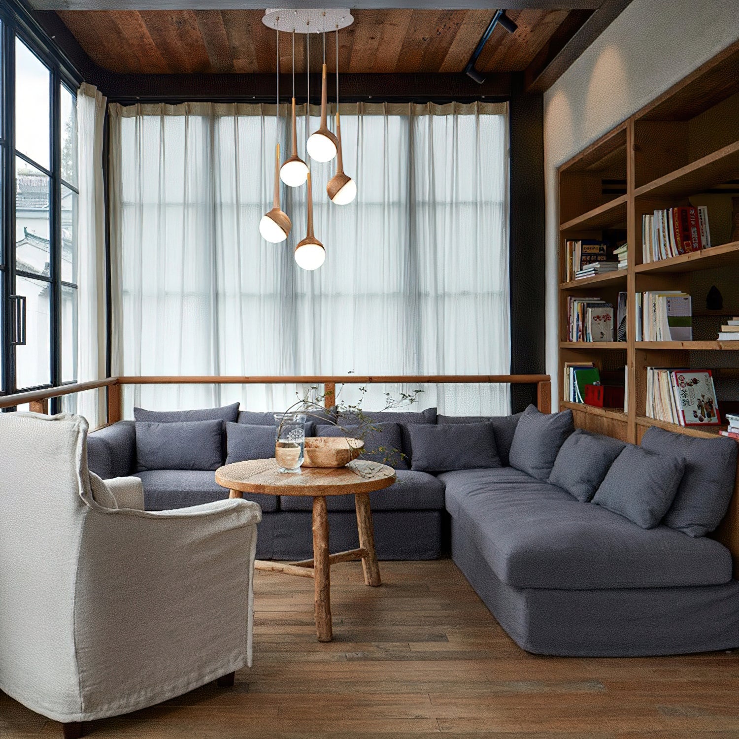 The Water Droplet Chandelier is a stylish and modern lighting fixture inspired by the natural elegance of a water drop suspended in mid-air. Each pendant light features a beautifully crafted wooden stem that tapers gracefully into a rounded. creamy white acrylic shade. resembling a water drop about to fall. The smooth transition between wood and acrylic creates a harmonious blend of materials. while the soft. diffused light creates a warm and inviting ambience.