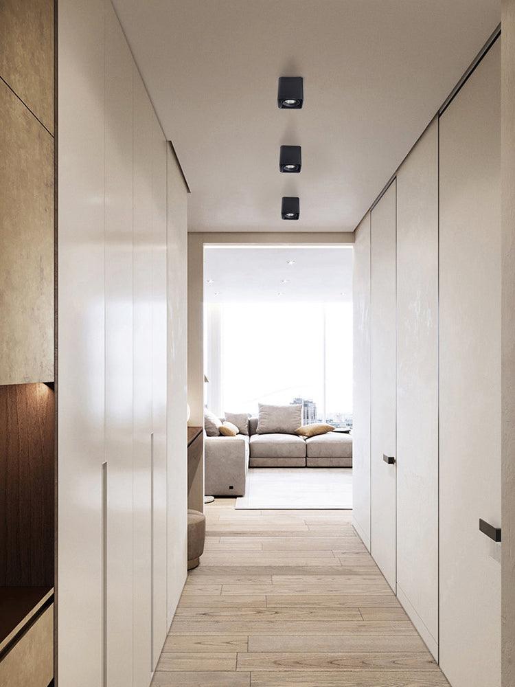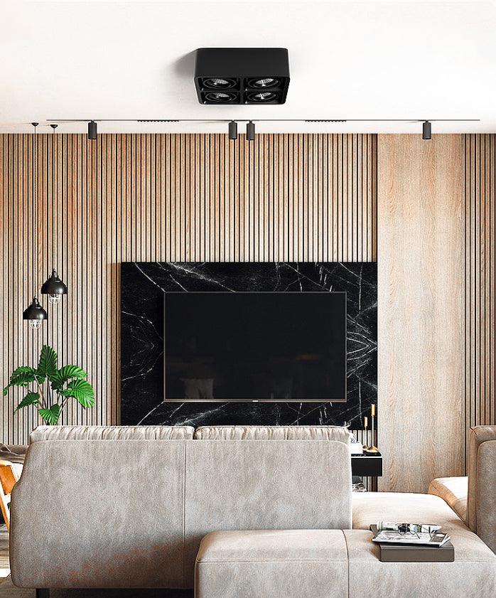 Its angular design made of steel sits directly on the ceiling and sets discreet accents. The Giyan surface-mounted light integrates effortlessly into the interior style of an apartment or is suitable for stylish shop lighting.