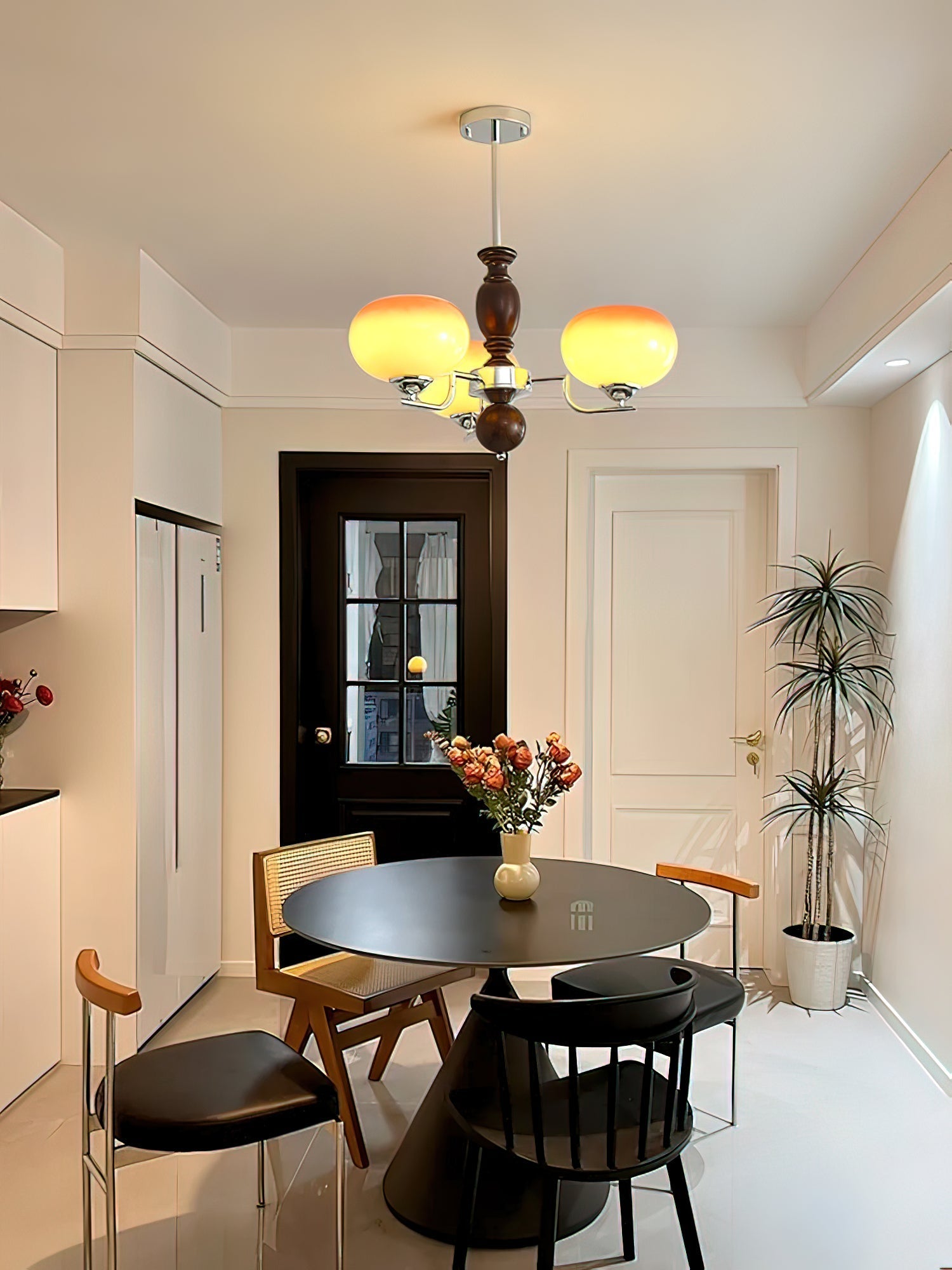 The Kingsley Chandelier embodies a blend of royal elegance and modern design. With its gracefully curved arms and rich amber glass globes. the name "Kingsley" evokes a sense of grandeur and timeless beauty. This chandelier is crafted to be a striking focal point. adding a touch of luxury and warmth to any interior setting. from traditional to contemporary spaces.