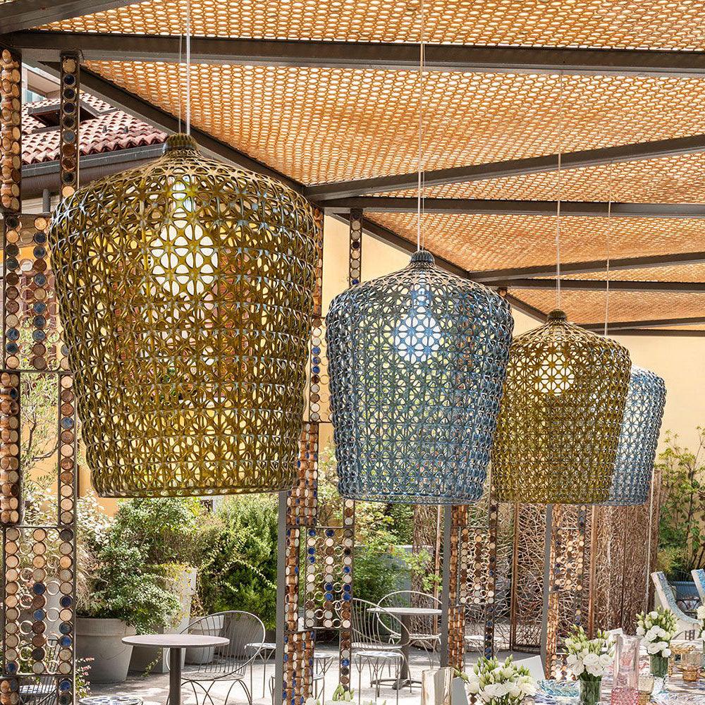 The Kabuki pendant lamp series is very decorative and brings an amazing light into the room. made of acrylic and has a easy and delicate look. Kabuki is available in five beautiful colours: blue. clear. green. white. and black.