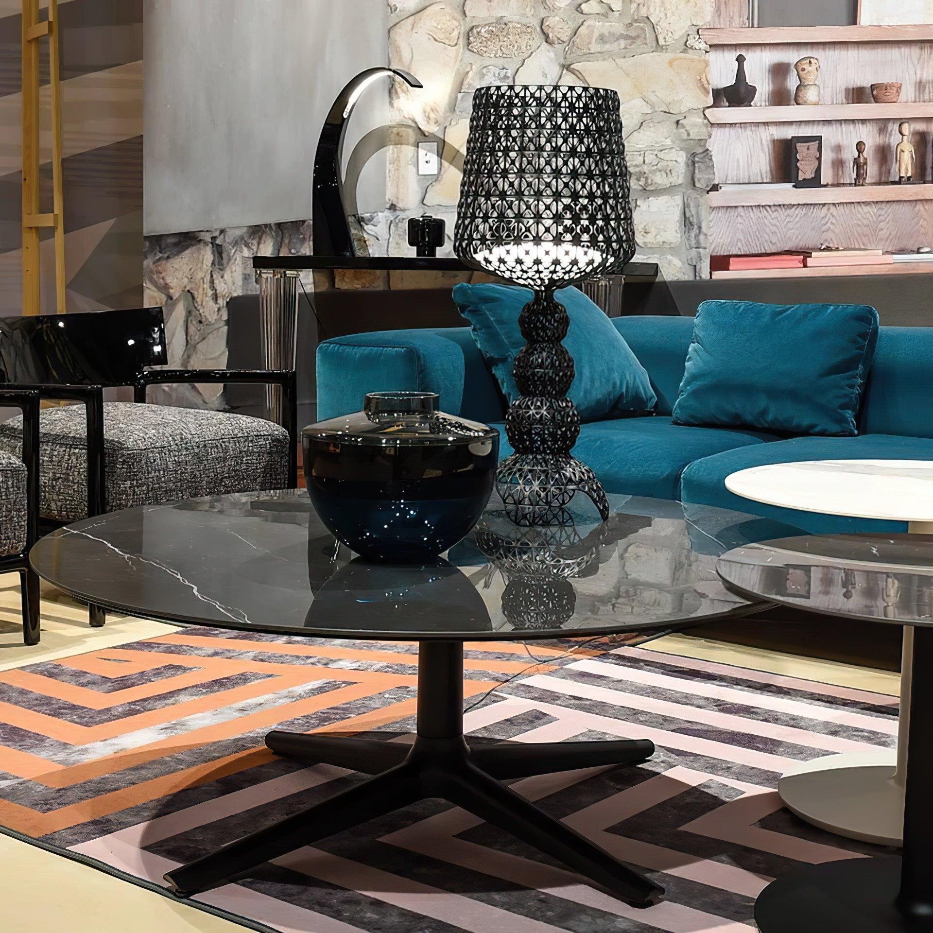 The Kabuki table lamp series is very decorative and brings an amazing light into the room. made of acrylic and has a easy and delicate look. Kabuki is available in five beautiful colours: blue. clear. green. white. and black.