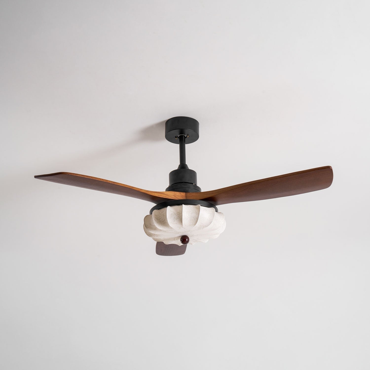 The Lotus Bloom Ceiling Fan Light from Vakkerlight blends tradition and modernity with serene elegance. Inspired by the soft contours of a blooming lotus. this design integrates a carved. petal-shaped frosted glass light diffuser that glows gently beneath dark walnut wood blades. The contrast between natural wood textures and matte black hardware delivers both aesthetic balance and contemporary flair.