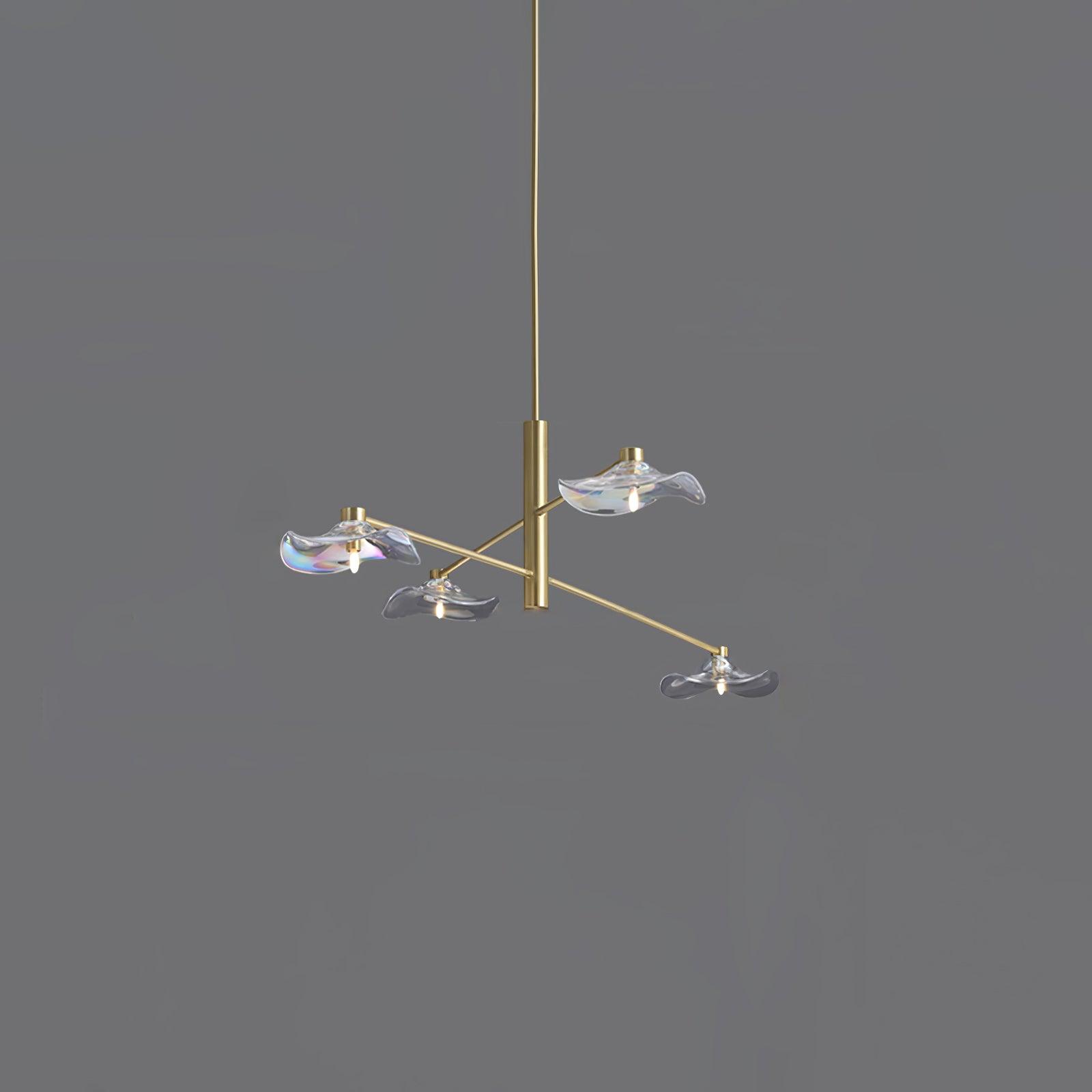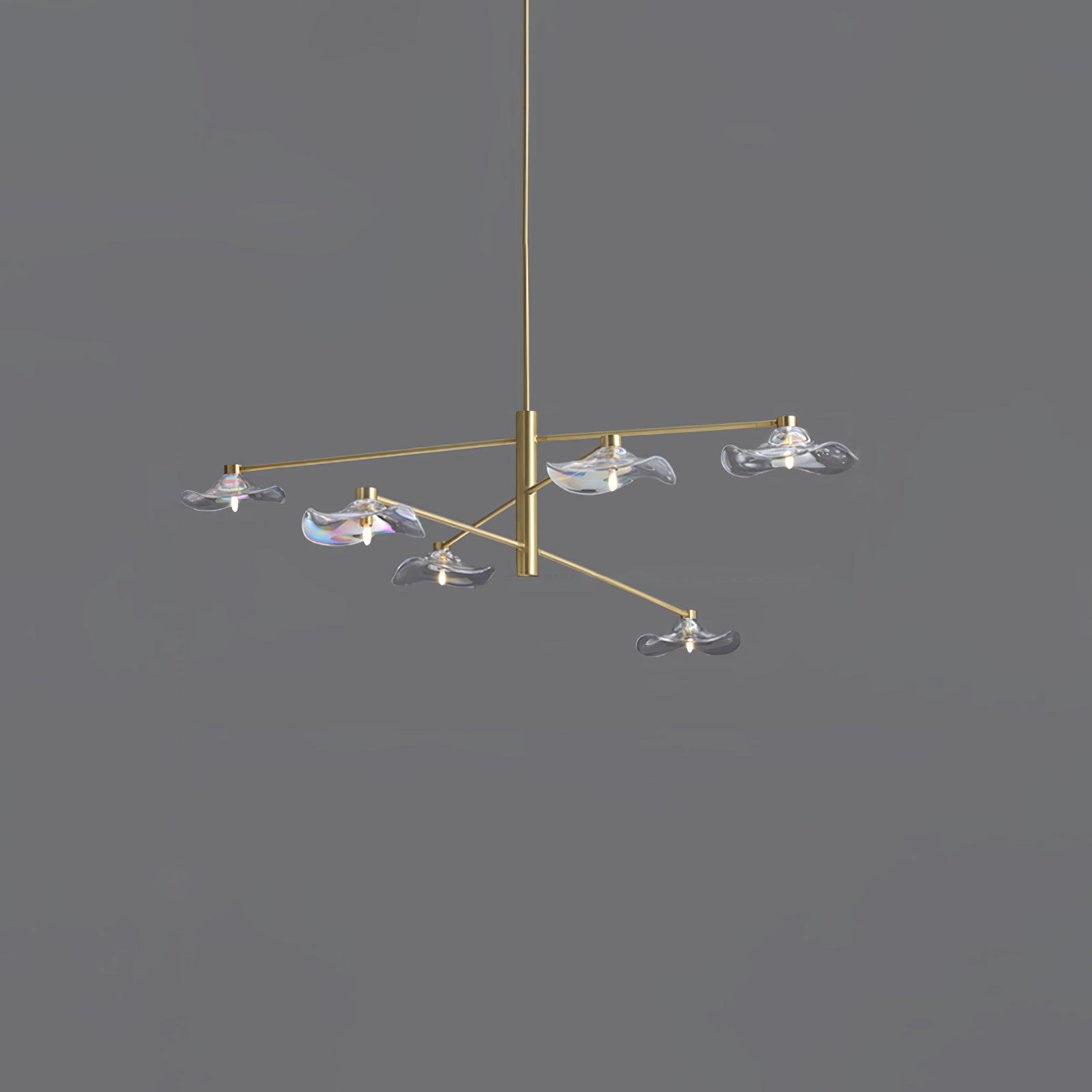 Introducing the lotus leaf glass chandelier: modern and stylish. this exclusive chandelier is the perfect lighting solution for living rooms. dining rooms. and bedrooms alike. Crafted with intricate detail from a unique shape of glass. this fixture is sure to create a sophisticated atmosphere with its tasteful design. Add a touch of elegance to any space with the Lotus Leaf glass chandelier.