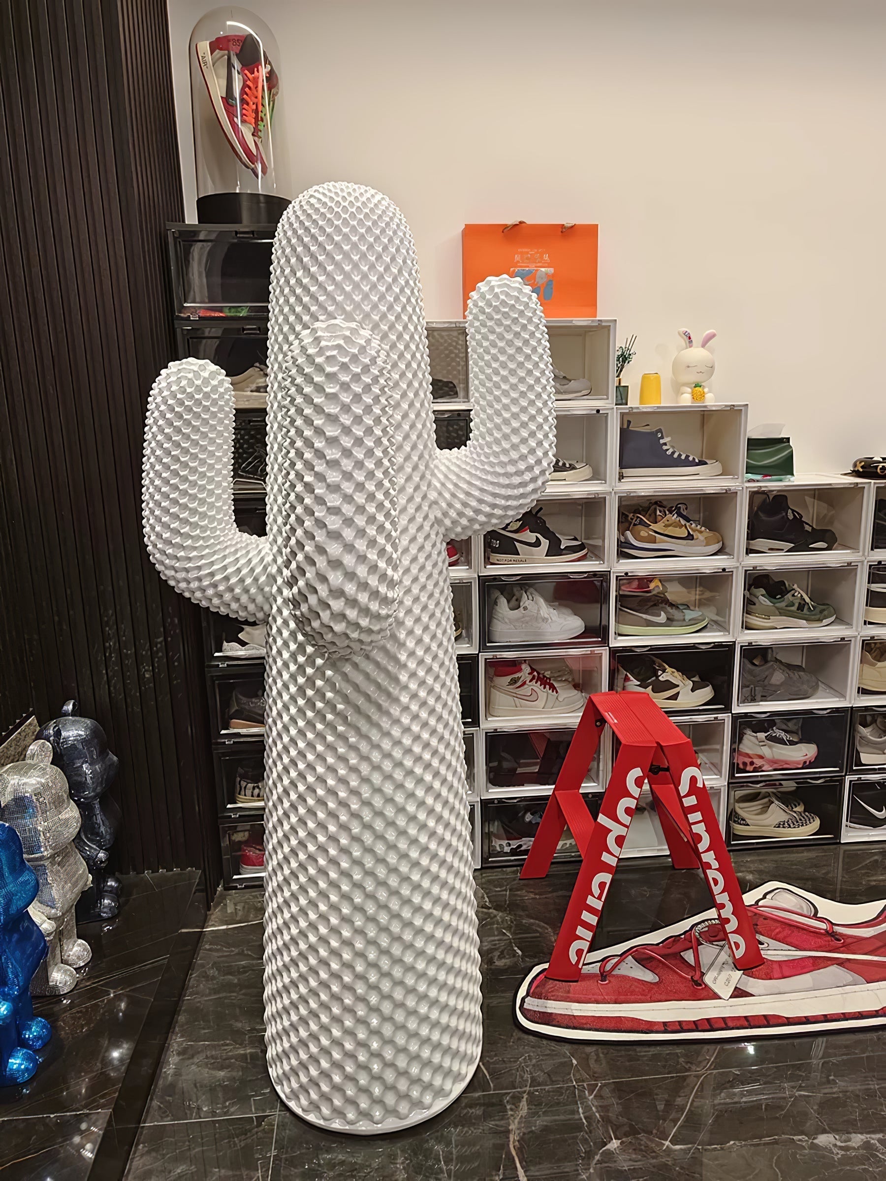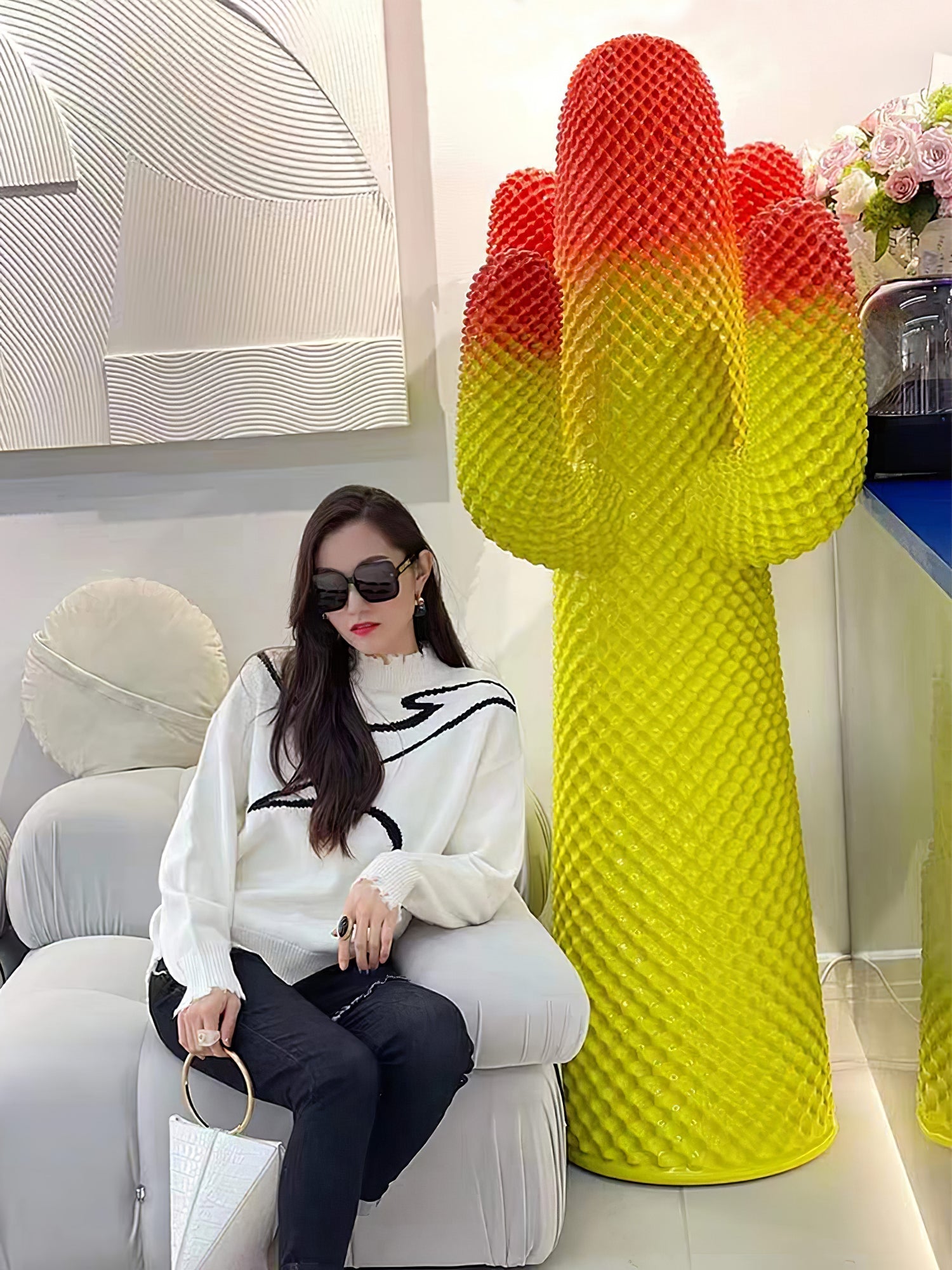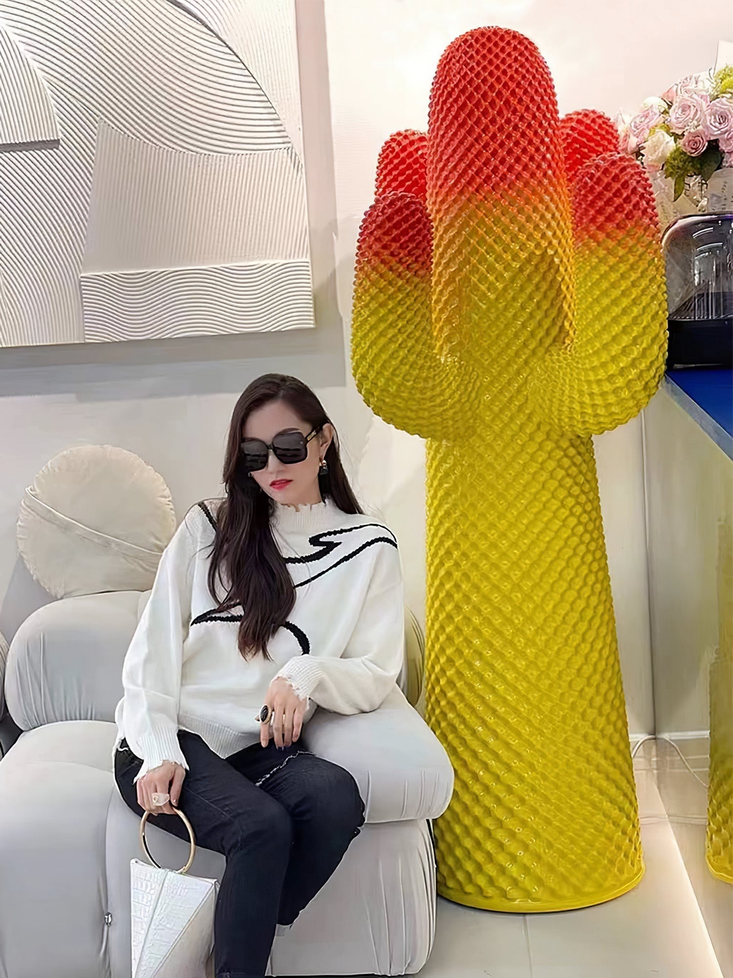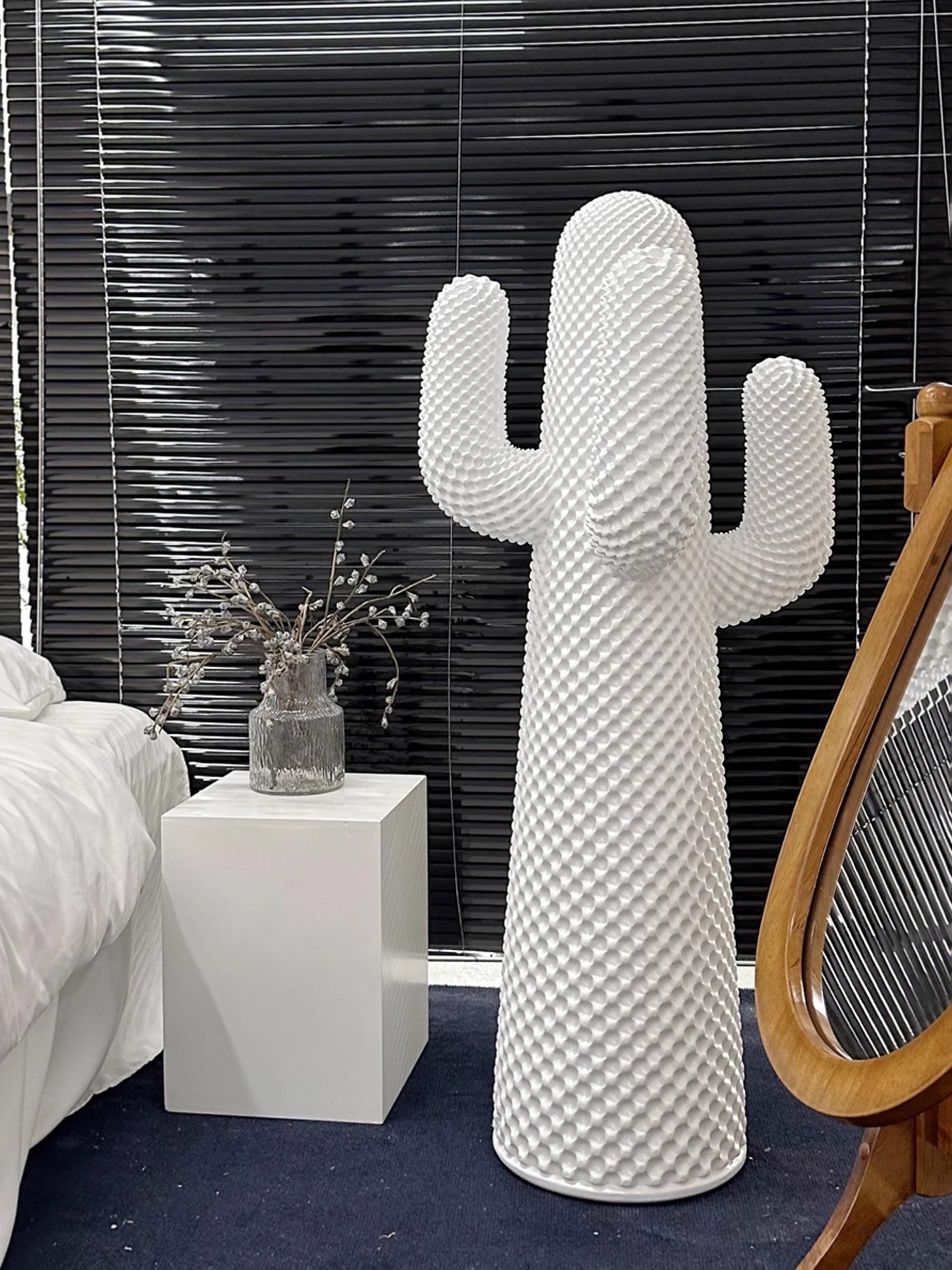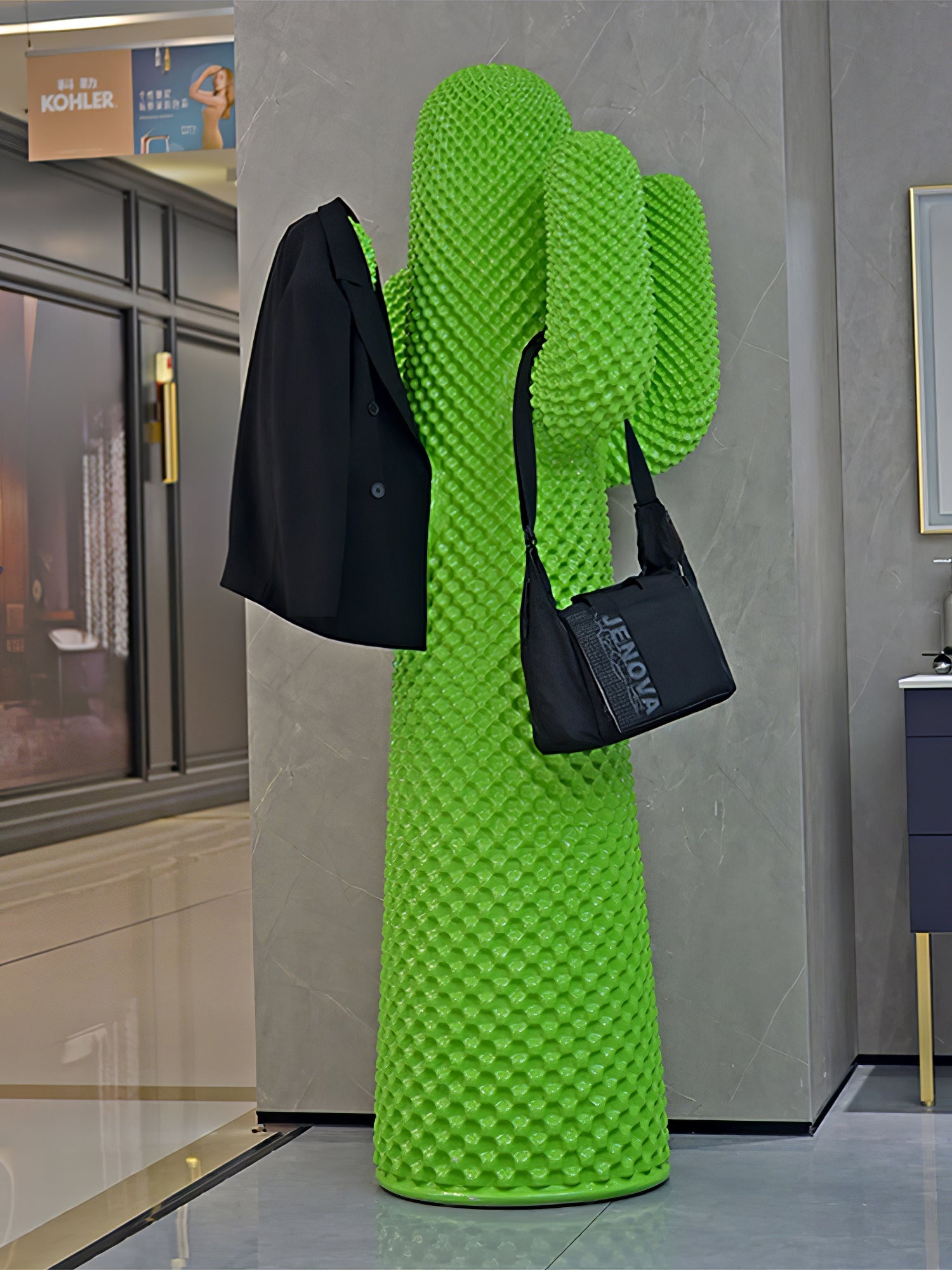Introducing the Mello Sculptural Cactus Coat Rack. a functional piece of decor that seamlessly combines form and function. Its playful cactus-shaped design serves as a coat rack and adds a touch of whimsy to any space. With its pop art icon status. it's sure to be an eye-catching addition to your home.
