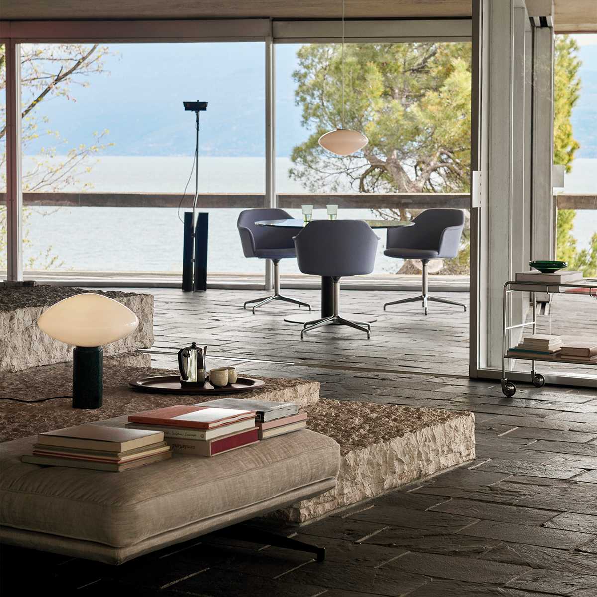 The Mist Table Lamp is designed to emit a gentle. diffused light through its alabaster lampshade. This creates a warm. inviting atmosphere in any room. Its elegant marble base adds a touch of sophistication. making it not just a functional lamp. but also a piece of art.