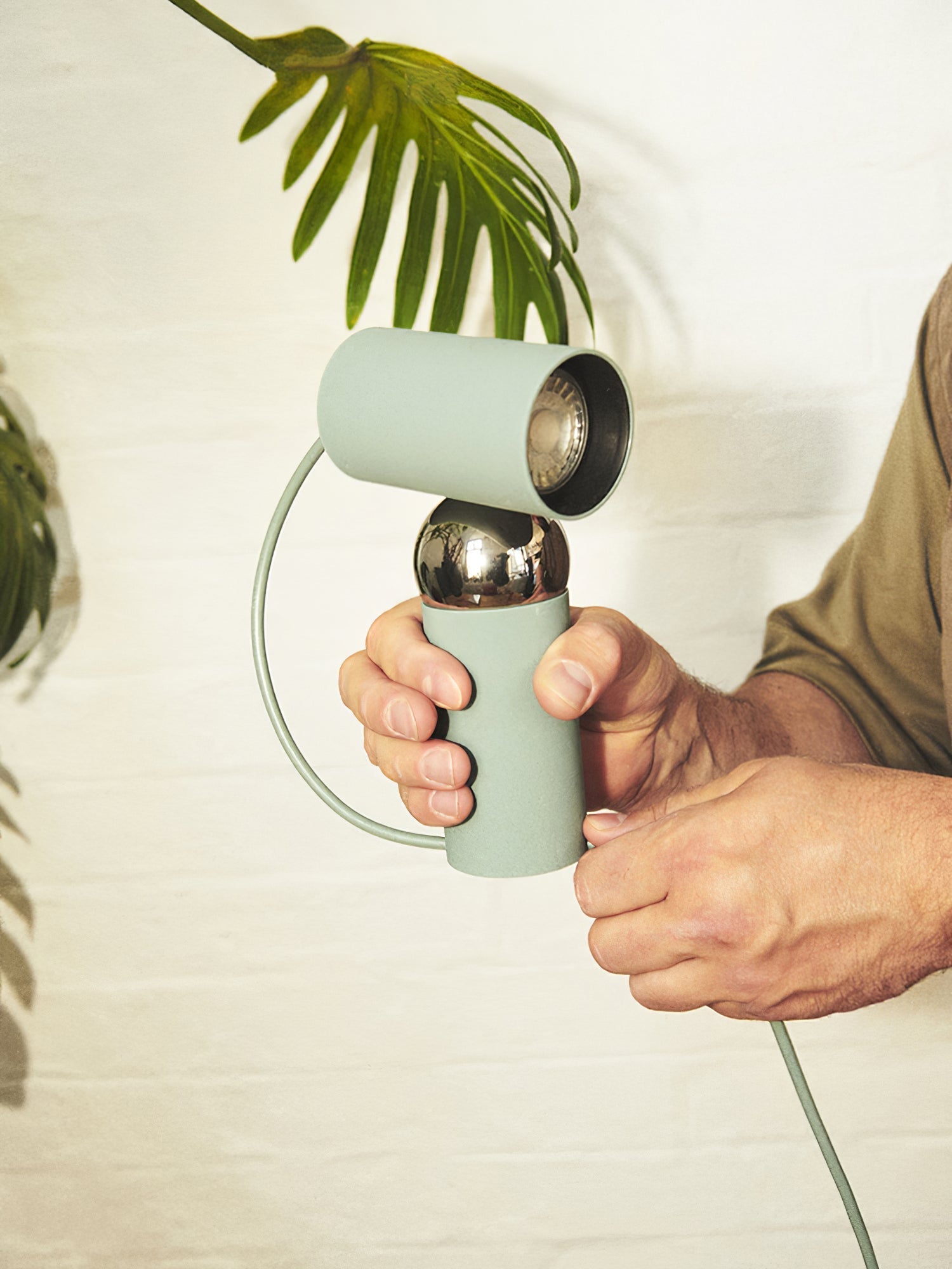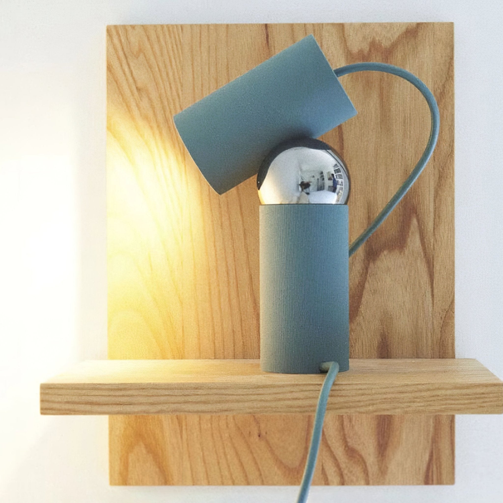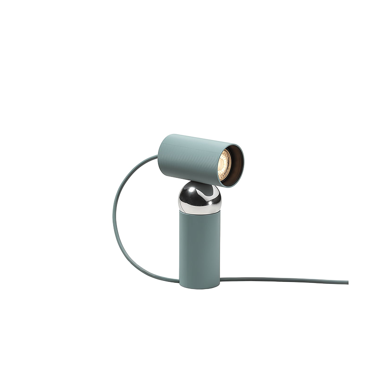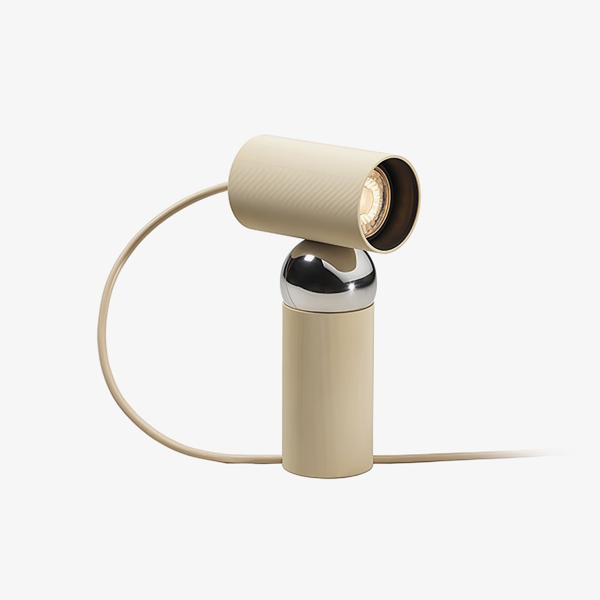 The Muuto Beam Table Lamp features two colorful cylindrical bodies connected by a magnetic ball joint. allowing for the top cylinder to rotate and guide the flow of light. This modern and functional design adds both style and practicality to any room.