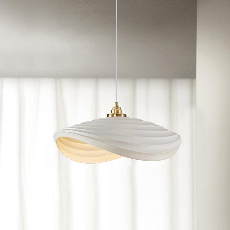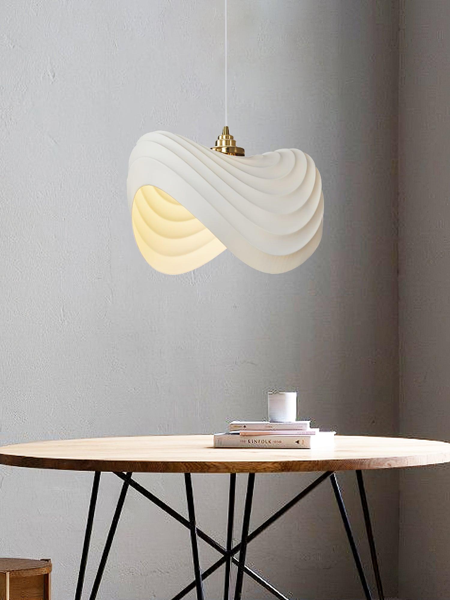 The layered shape was Inspired by microscopic diatoms. a strain of algae. that float around in the oceans. Resin curve of flow shape. It is a miracle of life in pendants. Lit from within by a E27 bulb. Navicula casts magical patterns in its wake.
