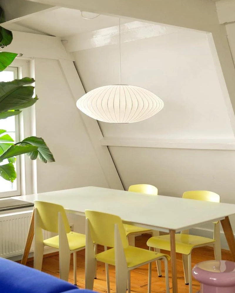 The lightweight steel wireframe of the Bubble Pendant ensures its shape is kept even when under tension. and in this particular piece a network of interconnected steel wires produces a delightful geometric crisscross pattern. Hang the Bubble Pendant in a cluster to create a delicate ambient glow in your interior.
