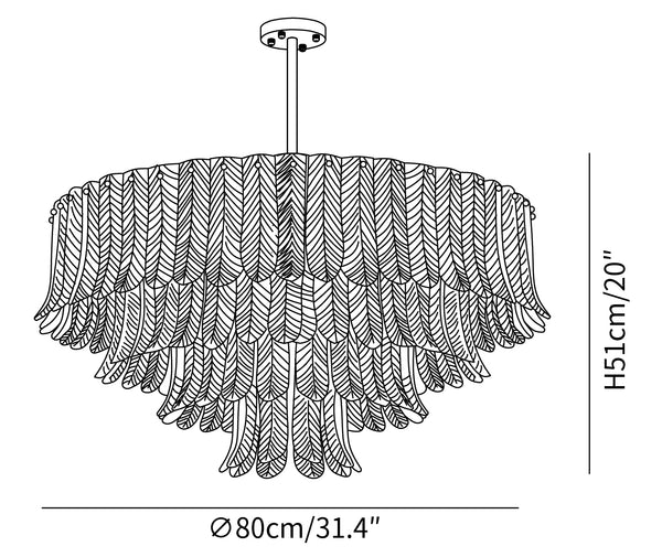 The Nobelium Tribeca Chandelier is a true masterpiece of design, featuring an elegant tapered shape adorned with intricately crafted glass plates, each resembling delicate leaves. This exceptional craftsmanship not only serves as a source of illumination but also transforms the interplay of light into a mesmerizing work of art, effortlessly enhancing the ambiance of any space with its captivating luminance.