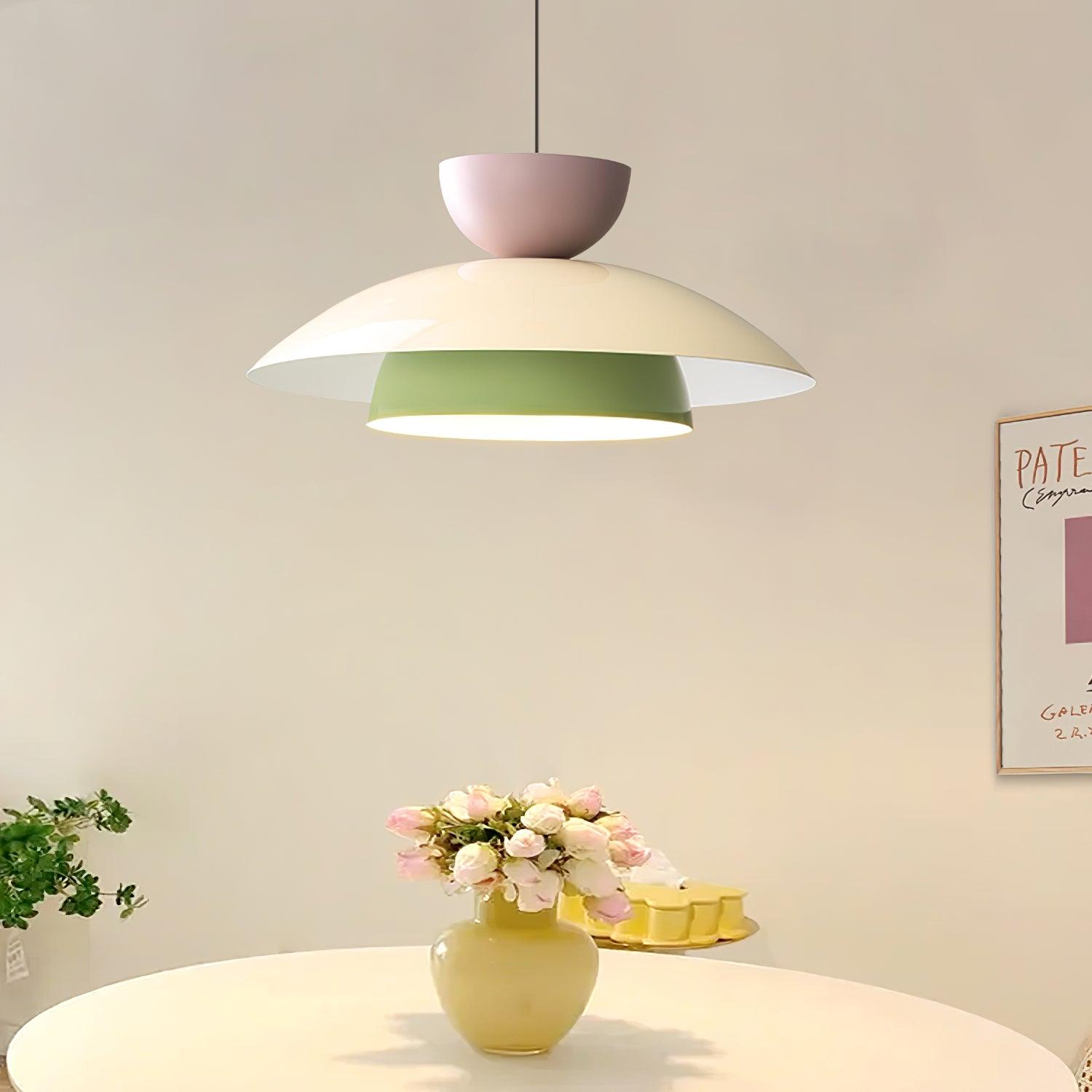 The Olemi Pendant Lamp exudes modern sophistication with its contemporary design and macaron color palette. Ideal for any interior style. the subtle design is an elegant addition to any room.