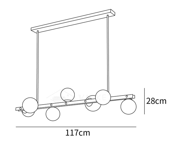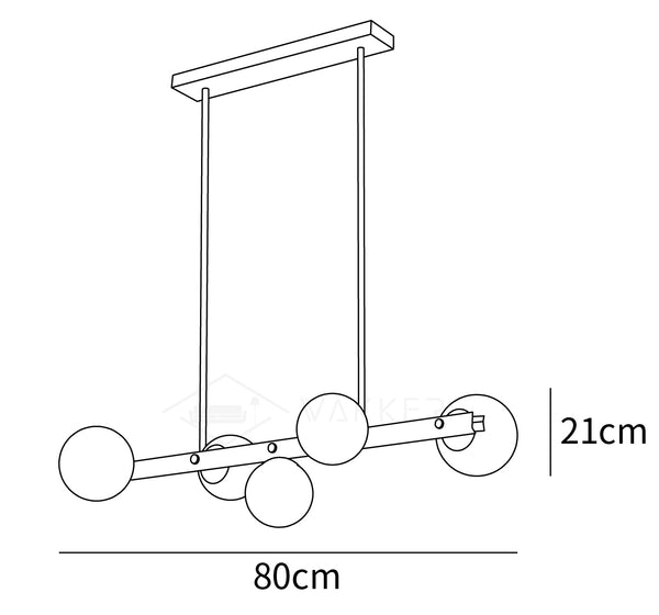 Suspension rod length 50cm / 19.7″. The length of the suspension rod can be varied upon request.