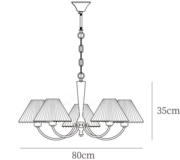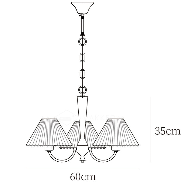 This chandelier impresses with its stylish design of curved arms and minimalist details. Its White pleated lampshade in an look skilfully round off the overall picture.