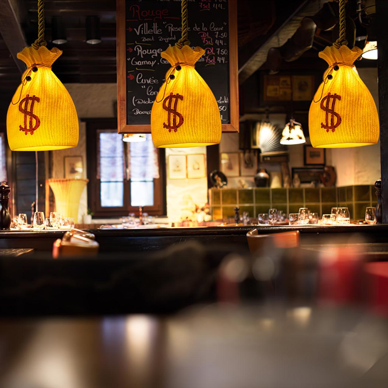 Celebrate abundance and good fortune with our "Prosperity Pouch Resin Pendant." This unique lighting fixture draws inspiration from the traditional symbol of wealth in many cultures. resembling a money pouch complete with the Chinese character for "yen" emblazoned on its surface.