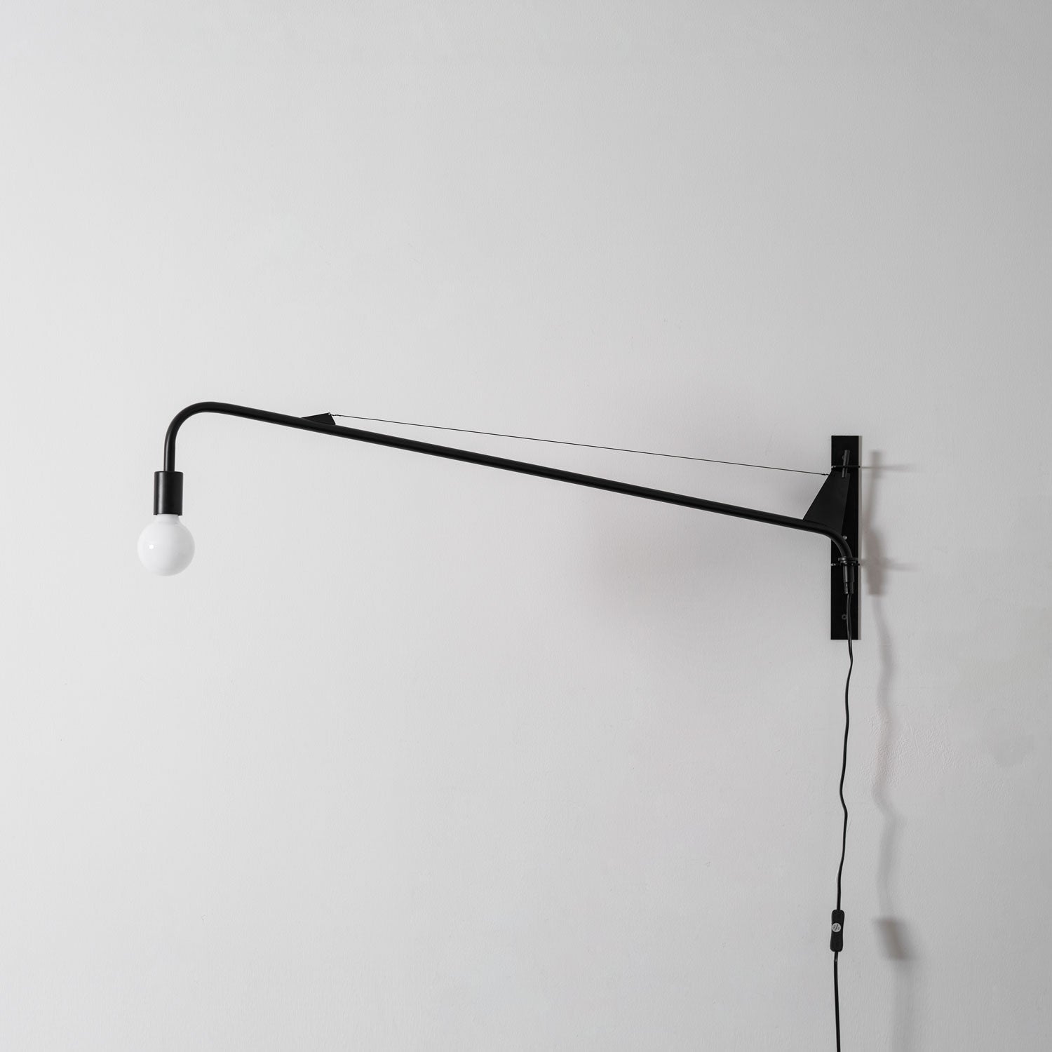 Introducing the Prouve Petite Potence Wall Lamp. a minimalist masterpiece crafted by the master himself. With a long metal arm. horizontal rotation function. and precise proportions. this lamp exudes elegance in any space. Perfect for living rooms. restaurants. offices. and coffee shops. Experience the essence of pure design with this essential piece.