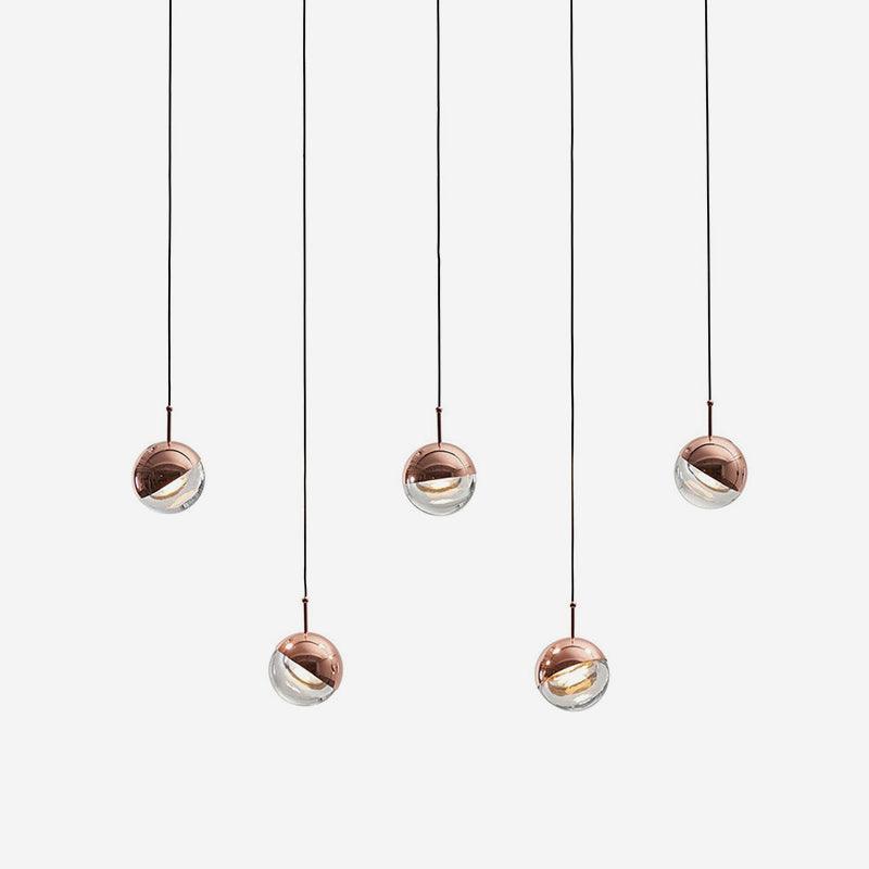 The Dora LED Pendant is a suspended drop light that was influenced by designer Chang Ting Ting's childhood. The stylish ball. elegantly crafted from steel and glass is half transparent and half opaque. The contrast allows both sides to complement the other equally.