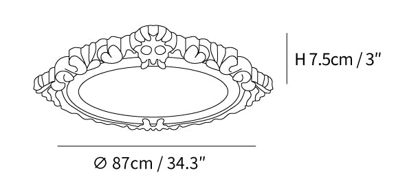 Size: ∅ 87cm x W 69cm x H 7.5cm / ∅ 34.3″ x W 27.2″ x H 3″