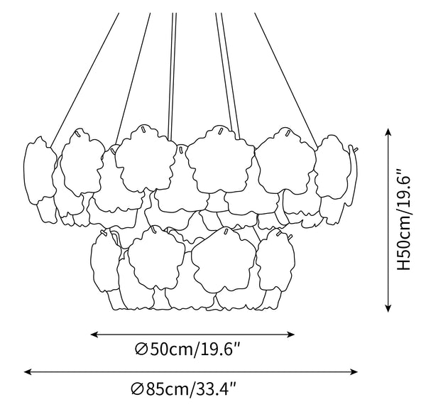 Size: Dia 50cm x H 20cm / ∅ 19.6″ x H 7.8″ (E14*8 Bulb)